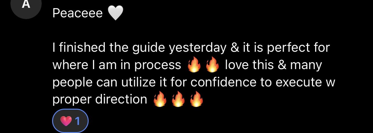 "I'm so glad I invested into this book girl! It was really me sewing a seed cause I was instantly drawn to the ad marketing pitch- but I thank God for obesidence for in publishing it. It has helped me so much in 2 days just unclutter & organize my thoughts I look forward to more drops from you & possibly meeting you one day."